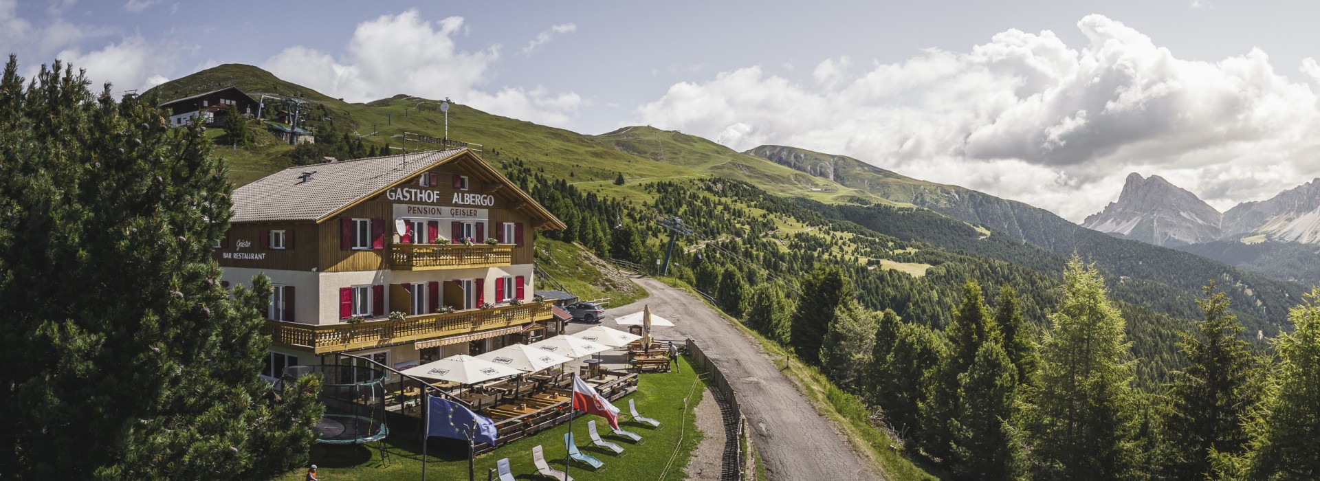 360 Grad Verwöhnung auf 2.050 Meter über dem Meeresspiegel – des gib's bei Hörby auf dem Almgasthof Geisler! Das beschauliche Häuschen liegt mitten im Ski- und Wandergebiet Plose und nennt liebevoll und gemütlich eingerichtete rustikale Gästezimmer sein Eigen. So hoch oben wie wir liegen, scheint die Sonne viele Stunden am Tag und küsst allen ausgiebig das Gesicht. Rund um die Alm gibt es nichts als saftige, grüne Wiesen mit herrlich duftenden Kräutern weit und breit – natürlich im Sommer! Im Winter geht es hingegen gleich mit den Skiern vor unsere Haustüre, da die Pisten des Wintersportareals Plose direkt bis zum Gasthof Geisler führen! Der wunderbare Panoramablick auf die hellen Kalksteinspitzen der Geislergruppe und den Peitlerkofel verzaubert unsere Gäste das ganze Jahr!